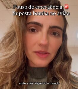 “Vinte anos viajando o mundo e é a primeira vez que passo por uma situação dessa.” Foi assim que a influenciadora de viagens Ana Stier começou a relatar, por meio de seu perfil no Instagram (@anastier), a experiência que viveu a bordo do voo AD4816, da Azul, que saiu de São Luís (MA) na noite desta quinta-feira (7) com destino ao Aeroporto de Viracopos, em Campinas. A aeronave precisou desviar a rota e pousar no Aeroporto Internacional de Brasília após uma ameaça de bomba.