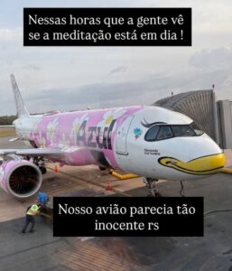 A influenciadora então passou a conversar com passageiros próximos, pedindo que imaginassem o avião pousando em segurança.