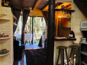 A decoração nos faz voltar ao passado, pois em um deles, o Tiny House, voltado exclusivamente para casais, há até um pequeno fogão a lenha, que também pode ser utilizado como lareira na sala de estar.