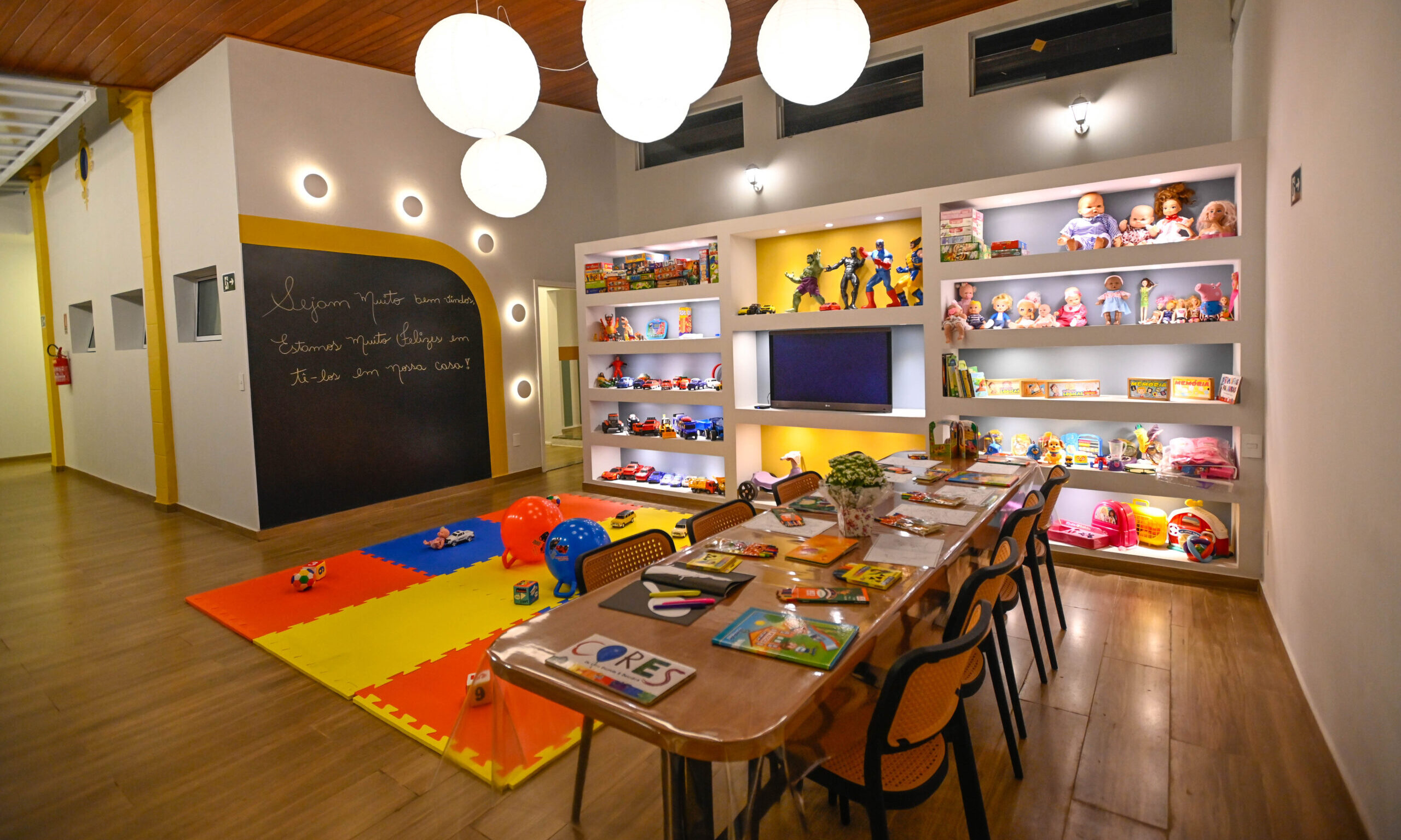 São 11 quartos, incluindo o berçário, uma sala de TV, brinquedoteca, uma quadra coberta, uma cozinha industrial com duas câmaras de alimentos e dispensa, lavanderia, rouparia, área de descanso de funcionários e prédio destinado à área administrativa da organização.