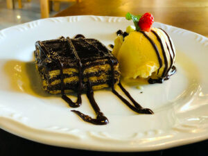 O cardápio possui opções de carnes, aves, massas e até peixes, além de diversas opções de sobremesas deliciosas. Vários rótulos de vinhos harmonizam perfeitamente com a proposta gastronômica. A Taberna funciona de segunda a quinta das 12h às 16h e das 18h30 às 21h30. Sextas e sábados das 12h às 22h30 e aos domingos das 12h às 22h30.