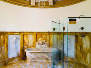 Já a suíte mais procurada do meio de hospedagem é a Imperial, a maior entre todas as habitações do castelo. Além do amplo e elegante espaço, todo decorado, possui uma banheira exclusiva.