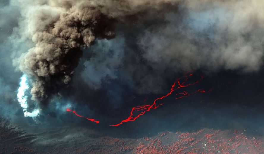 A lava ocupa já área de quase 700 hectares e destruiu mais de 1,5 mil edifícios na ilha. (RTP via Agência Brasil)