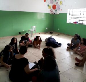 Outra ação fundamental para concretizar os objetivos do projeto é a oferta de encontros quinzenais de biblioterapia aos familiares e responsáveis dos alunos.