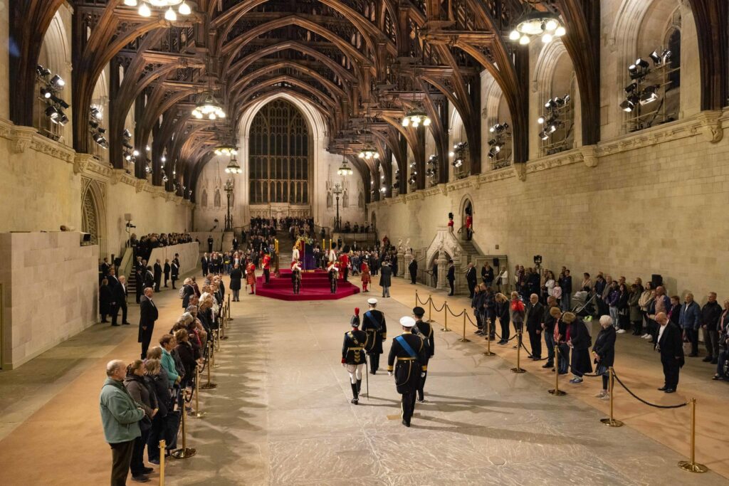 A rainha morreu a 8 de setembro aos 96 anos no Castelo de Balmoral, na Escócia, após mais de 70 anos no trono, o mais longo reinado da história do Reino Unido, e o corpo encontra-se em câmara ardente no edifício do parlamento britânico, em Londres, até segunda-feira.