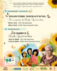 A Manifesta Cia homenageia a escritora Ruth Guimarães em novembro, em Campinas, com o espetáculo infanto-juvenil “As Comadres de Ruth Guimarães” e a instalação literária “Encontro ao Pé do Fogo: o universo de Ruth Guimarães”.