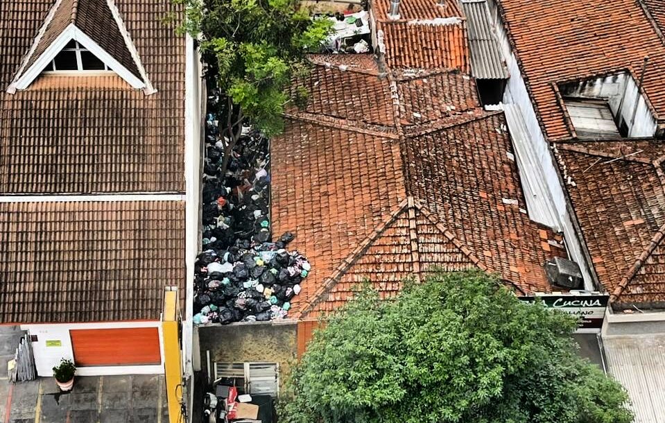 Uma foto feita por um morador em um prédio próximo revelou que o local está tomado por materiais envolvidos em sacos de lixo.
