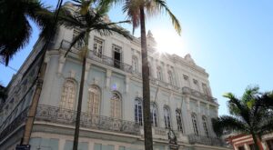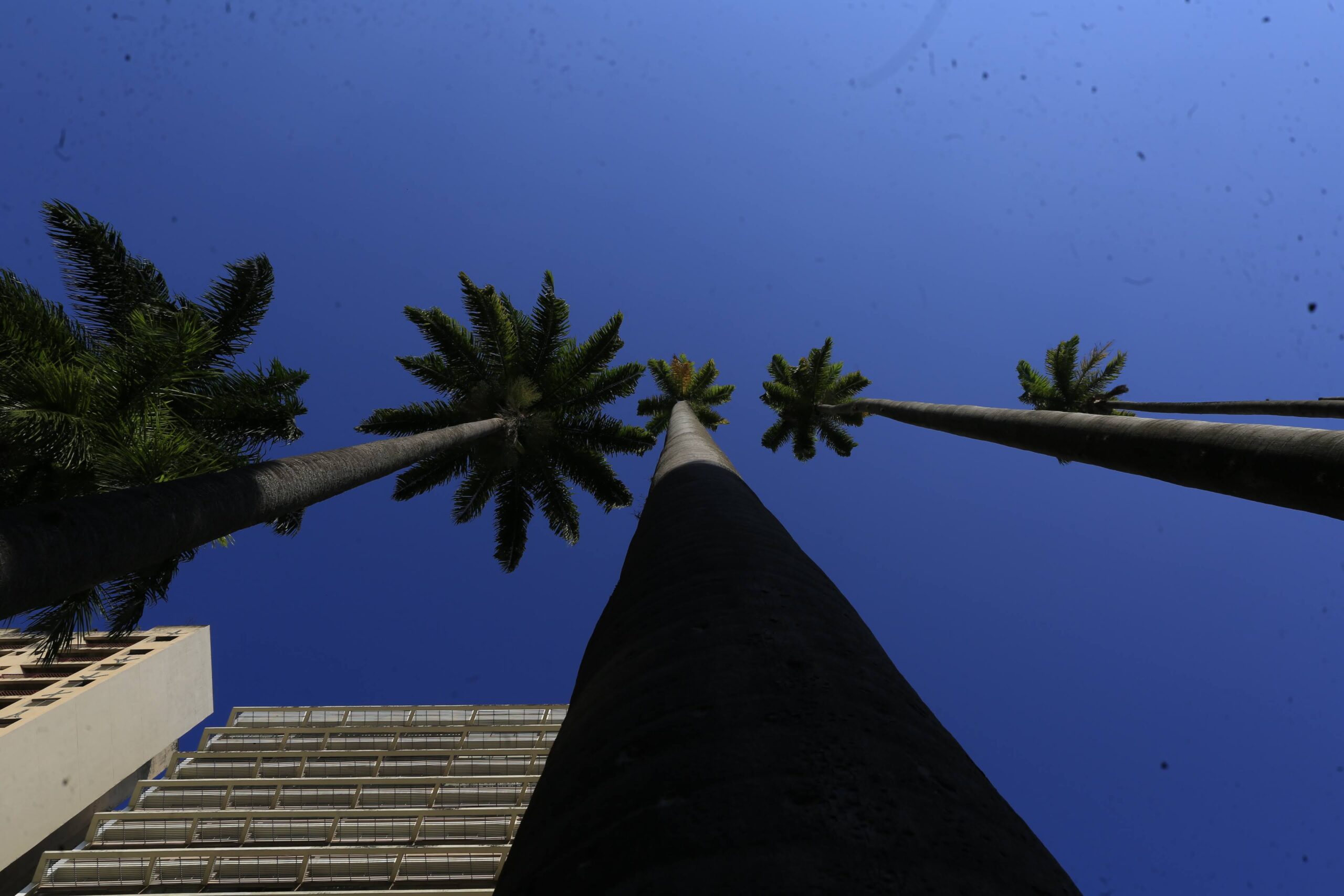 Edifício Oscar Niemayer, com a moldura das palmeiras imperiais plantadas na Praça Carlos Gomes - Foto: Leandro Ferreira/Hora Campinas