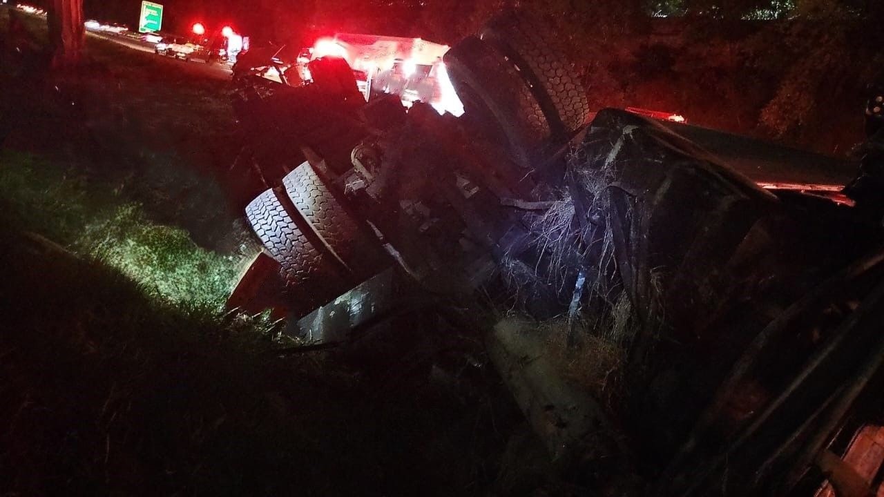 Um acidente com vítima fatal provocou a interdição total da pista sentido Anhanguera da Rodovia D. Pedro, em Campinas, na altura da Leroy Merlin, na noite deste sábado (14). Segundo informações da Agência de Transporte do Estado de São Paulo (Artesp), uma carreta Scania tombou sob o pórtico da rodovia e parou no canteiro central. O motorista ficou preso nas ferragens e faleceu no local.