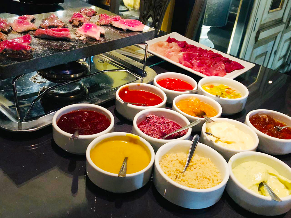 Fondue de carne tem cortes suculentos e grande variedade de molhos - Foto Jéssica Aquino