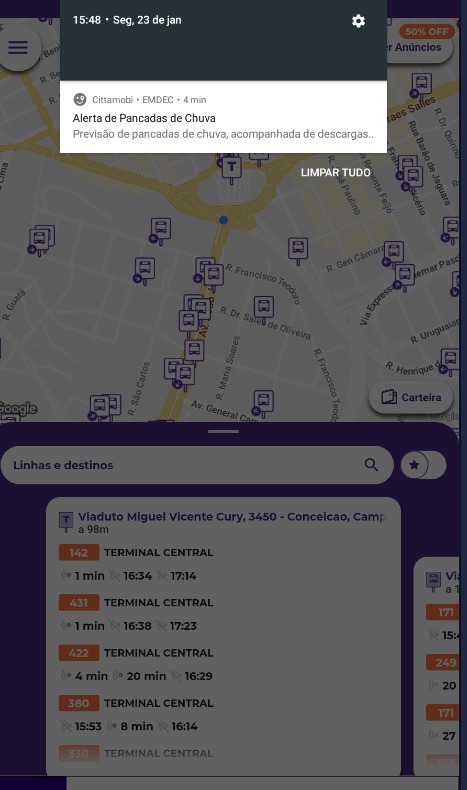 Visando evitar maiores transtornos, a EMDEC (Empresa Municipal de Desenvolvimento de Campinas) emitiu alguns alertas para a população através do aplicativo Cittamobi. Estes alertas informaram sobre os riscos meteorológicos da região e com estas informações foi possível facilitar a rotina dos usuários, que desde modo, conseguiram tomar uma decisão assertiva sobre seu trajeto.