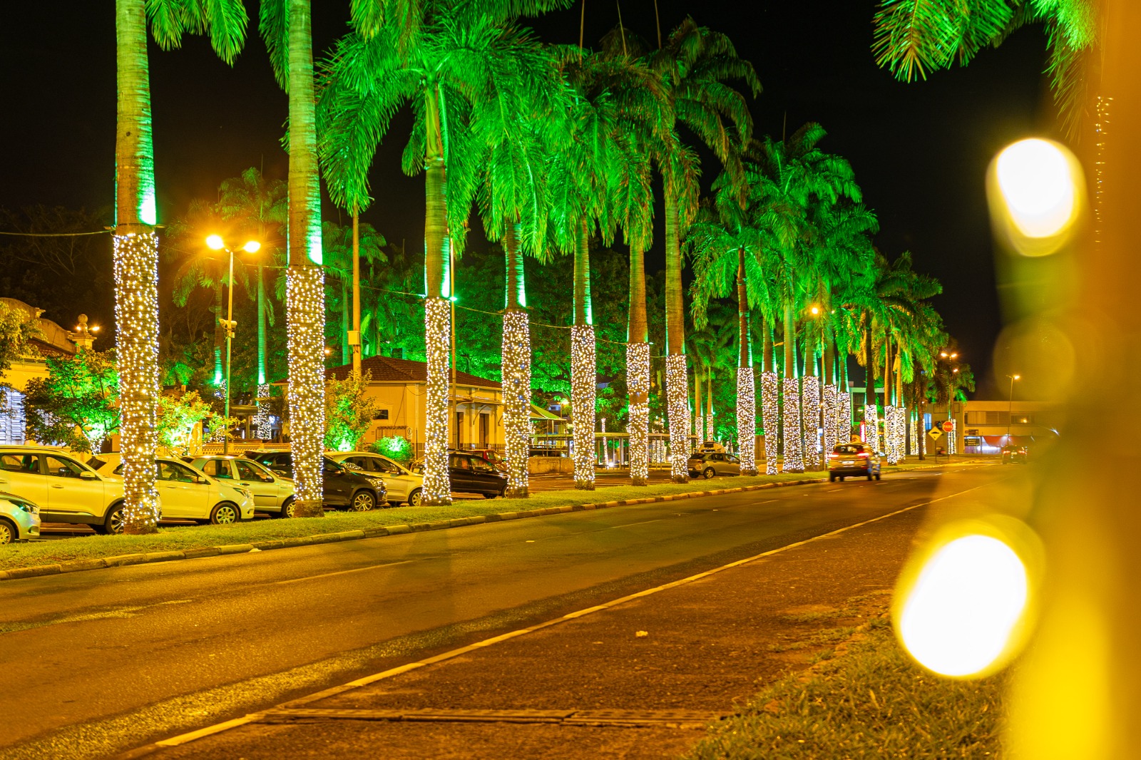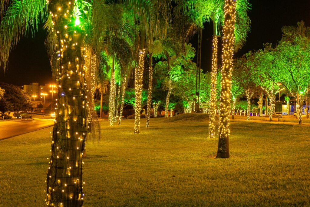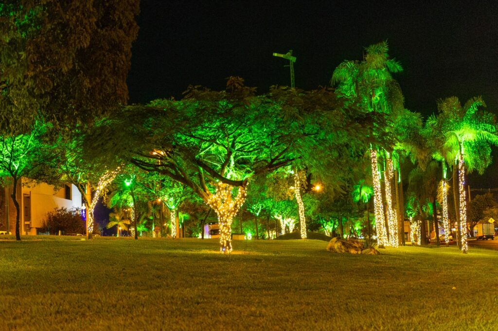 A combinação do verde e do amarelo, combinado com o paisagismo, fez da decoração natalina de Jaguariúna uma das mais belas da RMC.