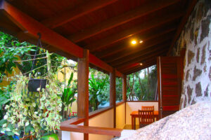 O destaque é para o apartamento Petrus, construído com blocos de Granito Verde Ubatuba, detalhes em madeira como móveis em Maracatiara e vigamento em Angico Preto, totalmente integrado com a natureza.