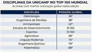 “A Unicamp possui nove disciplinas no ranking das 100 melhores do mundo, o que revela sua posição de liderança no cenário brasileiro e de destaque no cenário internacional”, disse o pró-reitor de Desenvolvimento Universitário, Fernando Sarti.