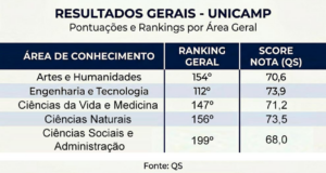 Os resultados gerais da Unicamp mostram que a área de Engenharia e Tecnologia mantém a melhor classificação (112ª posição) e a maior pontuação (73,9, de um máximo de 100) dentro da universidade, considerando a média ponderada de todos os indicadores avaliados.