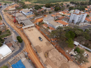 Já no lado da avenida São Francisco de Assis, próximo à praça de mesmo nome onde fica a igreja, outra ação que segue é a execução do muro de terra armada para acesso ao viaduto. Nessa parte já é visível uma das cabeceiras do dispositivo.