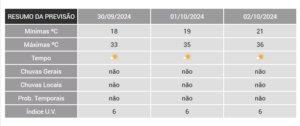 Conforme a previsão, “a tendência para o final da semana é de passagem de uma frente fria, provocando redução na temperatura”. Há, segundo o Cepagri, uma pequena possibilidade de chuva a partir da quinta-feira (3).
