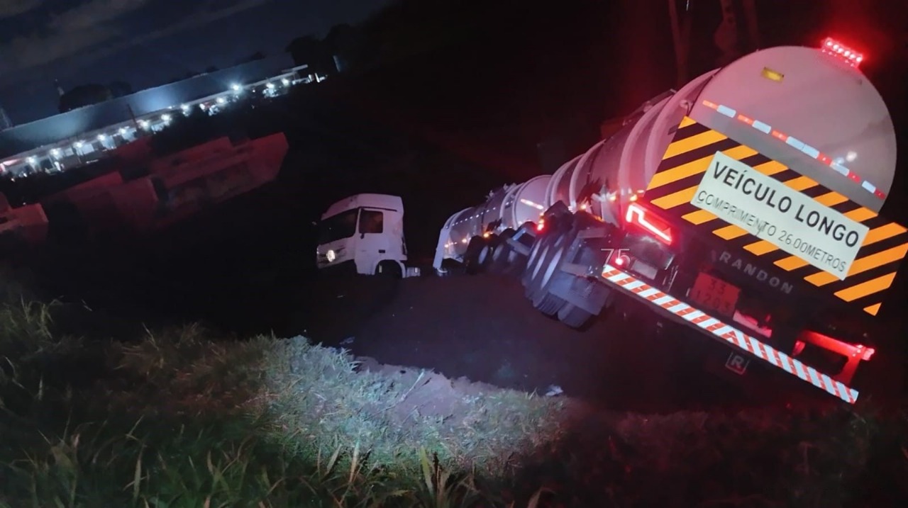 Picape perde o controle após atropelamento e atinge carreta; via ficou bloqueada durante a madrugada