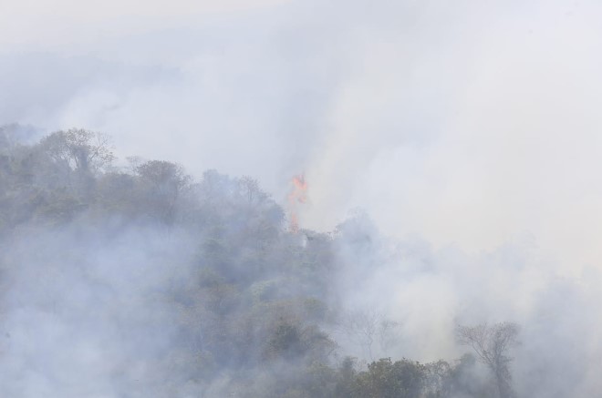 O helicóptero Águia, da Polícia Militar (PM), seguia na manhã desta quinta sobrevoando o espaço que faz parte de uma extensa área de preservação ambiental na Serra das Cabras.
