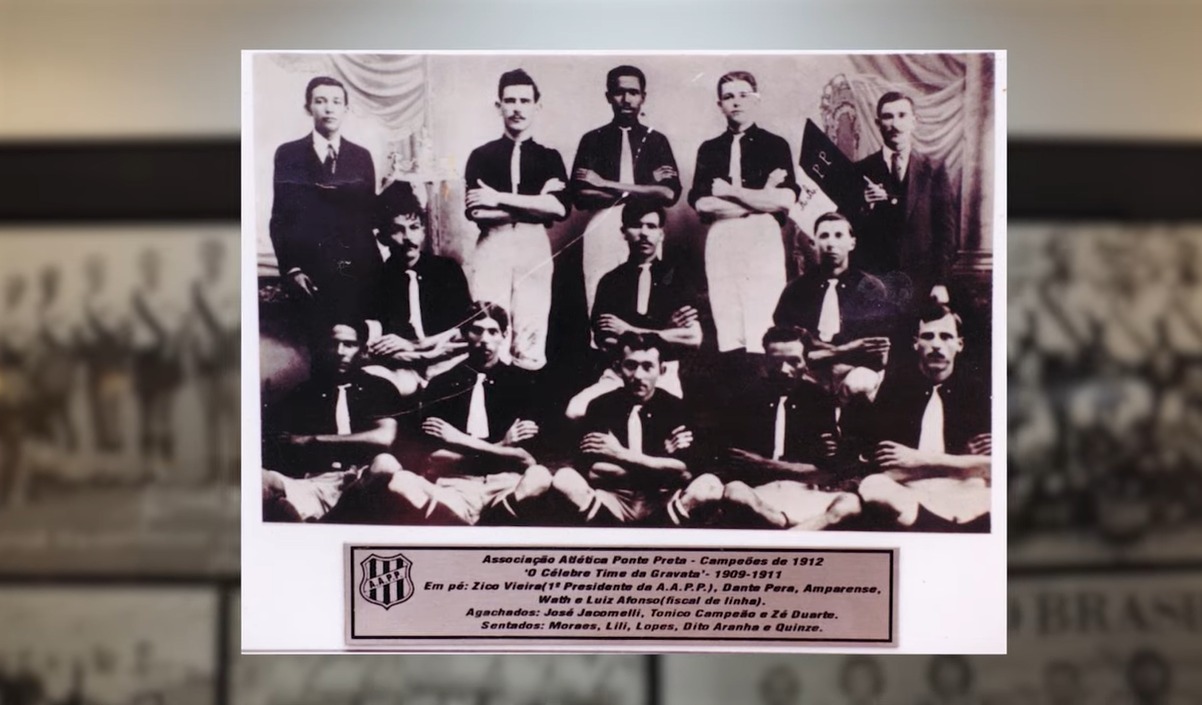 Entre as páginas mais simbólicas dessa história está o “Célebre Time das Gravatas” — homenageado na nova camisa —, campeão da Liga Operária de Foot-Ball Campineira em 1912. Além de marcar um período vitorioso, aquela equipe se destacou por incluir jogadores negros em uma época em que o futebol brasileiro era restrito à elite branca. Na foto histórica estão Amparense, Moraes e Benedito Aranha — este último já atuava na diretoria desde 1908 — ao lado de outros nomes que ajudaram a consolidar o clube.
