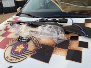 No carro dele, a polícia encontrou uma espingarda calibre .22, munições e a faca usada no ataque. Leandro foi preso em flagrante por homicídio, lesão corporal e porte ilegal de arma de fogo.