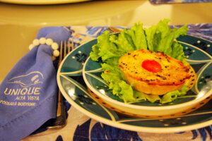 Em uma das noites, nossa reportagem experimentou como entrada uma quiche de alho poró. Em seguida, foi servido um caldinho de mandioquinha e como prato principal um filé de frango à parmegiana com espaguete com carne moída.