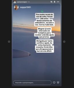 De acordo com a médica, Wagner está clinicamente estável, porém segue com afasia, sem comunicação verbal, e sem movimentos no lado direito do corpo. Outras possíveis limitações ainda serão avaliadas pela equipe médica no Brasil, explicou a esposa.