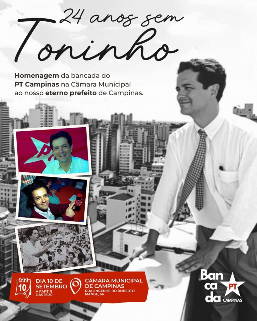 “Já são 24 anos e, ainda hoje, a população de Campinas sente a perda do companheiro Toninho. Ele era uma liderança jovem do PT, um urbanista reconhecido, estudioso da nossa cidade, que havia sido eleito prefeito. Sua morte violenta ceifou sonhos e deixou muita saudade, além de um sentimento amargo do que poderia ter sido seu governo se estivesse vivo. Vamos homenagear Toninho e manter sua memória e seu legado vivos”, afirma a vereadora Paolla Miguel, líder da bancada de vereadores do PT na Câmara Municipal.