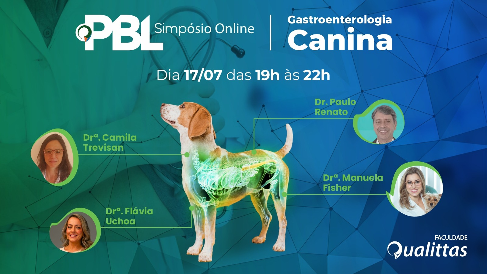 Para quem busca aprimorar os conhecimentos em gastroenterologia veterinária e enriquecer a prática clínica através da abordagem de casos clínicos do dia a dia veterinário, a Faculdade Qualittas promove o *PBL Simpósio On-line – Gastroenterologia Canina da Faculdade Qualittas, no dia 17 de julho, das 19h às 22h, na plataforma Congresse.