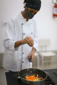 Vitoria Cristina Santos Silva, 21 anos, entrou no projeto Jovem Chef em 2019, para adquirir os conhecimentos básicos da culinária quente, com o intuito de ajudar sua mãe que na época tinha uma marmitaria.