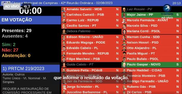 A Câmara de Campinas votou contra a abertura de uma Comissão Processante (CP) para apurar eventual prática de rachadinha por parte do vereador Marcelo da Farmácia (Avante). Dos 30 parlamentares presentes no plenário na sessão desta quarta-feira (2) à noite, somente dois votaram a favor, Major Jaime (PP) e Paulo Gaspar (Novo). Os demais 28 vereadores desaprovaram a instauração da CP. Assim, o pedido será arquivado. A sessão ordinária marcou a primeira reunião do segundo semestre, após o recesso de julho.