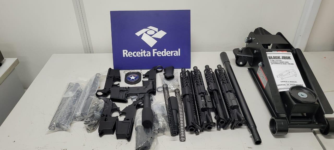 Algumas peças de armas estavam alocadas em prensas hidráulicas e outras mercadorias apresentavam falsa declaração de conteúdo.