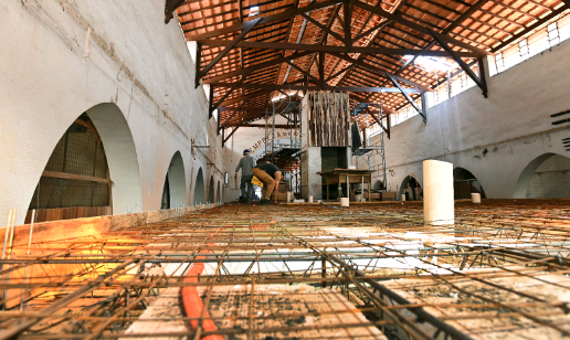 A concretagem da laje do mezanino, nesta quinta-feira (22), é mais uma importante etapa nas obras de requalificação do Mercado Municipal de Campinas. Após a secagem do concreto os permissionários poderão iniciar as intervenções nos boxes.