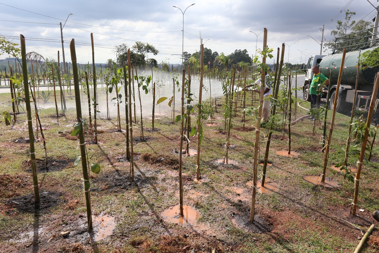 As árvores são provenientes do Viveiro Municipal Otávio Tisseli Filho, que fica no Parque Xangrilá e tem mais de 200 mil mudas em cultivo.
