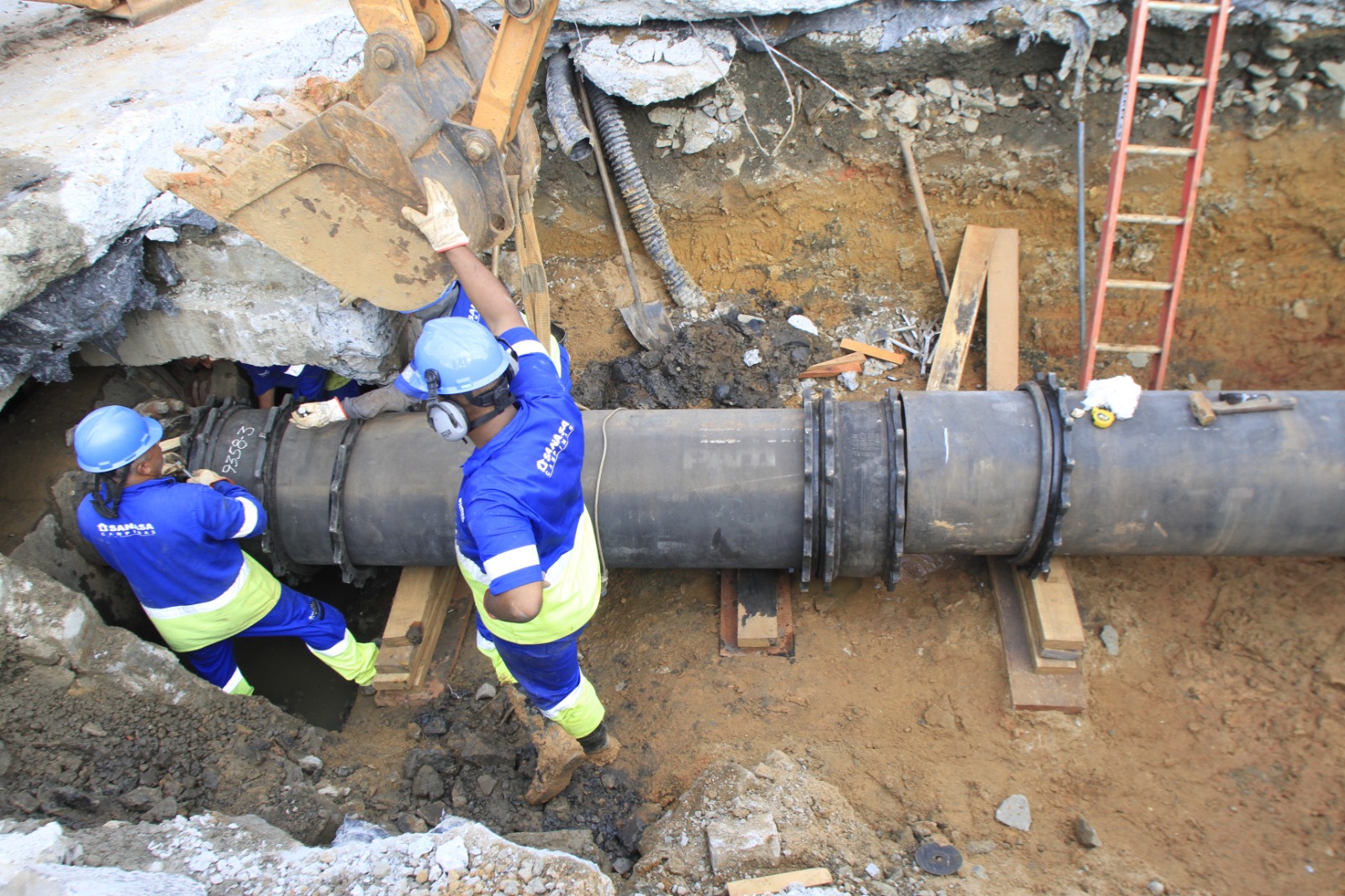 O conserto emergencial da adutora na Avenida John Boyd Dunlop foi concluído nesta segunda-feira (14), às 18h, com a substituição do trecho rompido, informa a Sanasa.