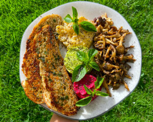 O prato pode se degustado tanto no café da manhã como no almoço. acrescentando uma taça de vinho branco orgânico ou um suco verde com couves da horta.