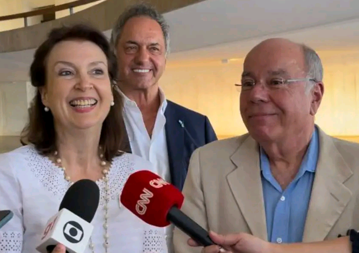 O ministro de Relações Exteriores, Mauro Vieira, avaliou como “produtiva” a reunião com a deputada argentina eleita Diana Mondino, chanceler designada pelo presidente eleito Javier Milei. Vieira destacou que, a despeito de possíveis falas críticas ao Mercosul, o que vale são as manifestações formais e que há desejo dos dois países em fazer o bloco avançar.