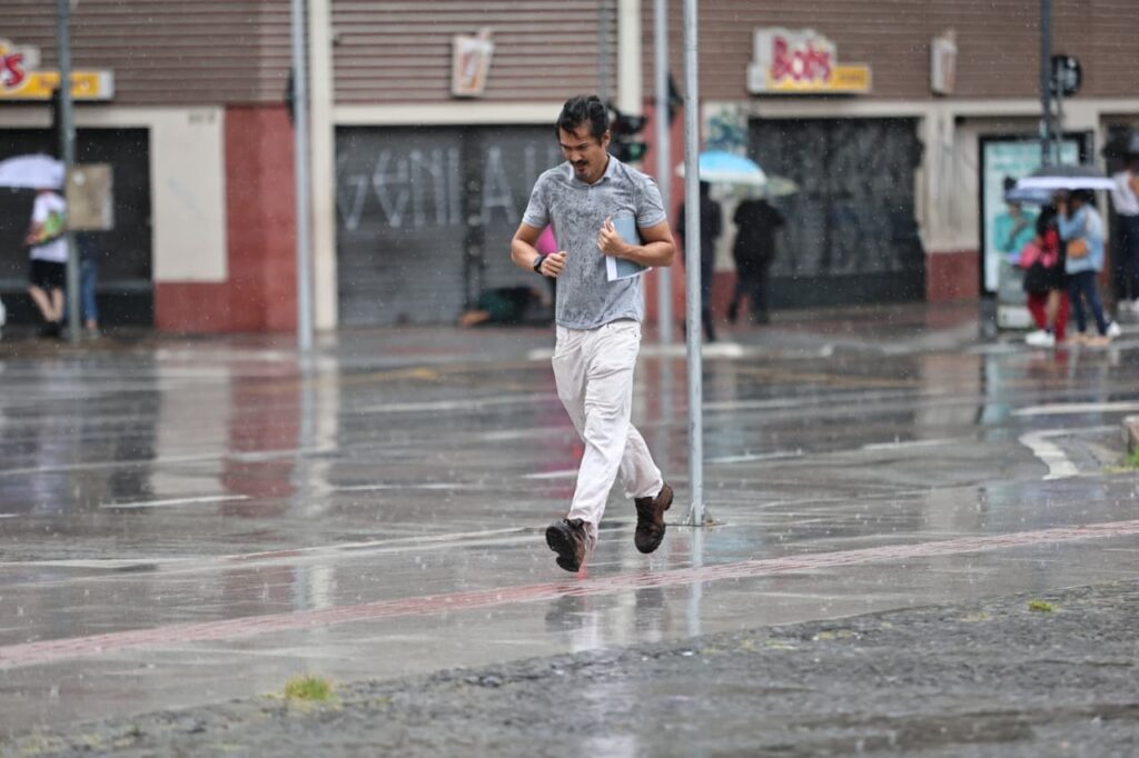 Quem não estava preparado, teve de apertar o passo para circular pelo Centro na manhã desta segunda-feira – Foto: Leandro Ferreira/Hora Campinas