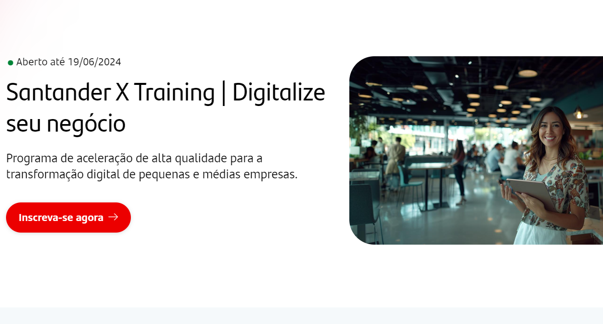 Tags: cursoempresasgratuitoinscriçõessantanderSantander X Training | Digitalizetreinamento