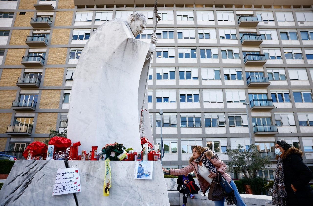 O Pontífice foi prontamente submetido a uma broncoaspiração e iniciou a ventilação mecânica não invasiva, com uma boa resposta nas trocas gasosas. “Sempre vigilante e orientado, Francisco colaborou com as manobras terapêuticas. O prognóstico ainda permanece reservado”, informou o Vatican News