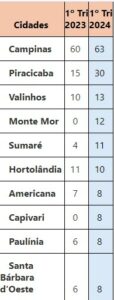 No comparativo, algumas cidades se destacam. Em Piracicaba as ocorrências dobraram: foram 15 no primeiro trimestre de 2023. Monte Mor e Capivari, que não tiveram colisões contra postes no ano passado, registraram, respectivamente, 12 e 8 em 2024.