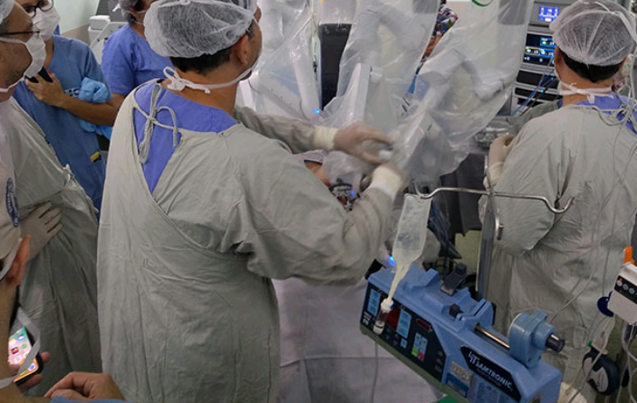 Sérgio Contes Ribeiro, chefe do grupo de Laparoscopia (nome da técnica robótica) Ginecológica do Hospital das Clínicas, explica, em linhas gerais, como funciona o tratamento. “O cirurgião fica sentado num console e, através de movimentos com os seus dedos, ele coordena os braços robóticos que estão próximos do paciente. É realmente uma cirurgia que traz uma segurança muito grande para as nossas mulheres que tenham a necessidade de fazer algum procedimento de tratamento cirúrgico ginecológico.”