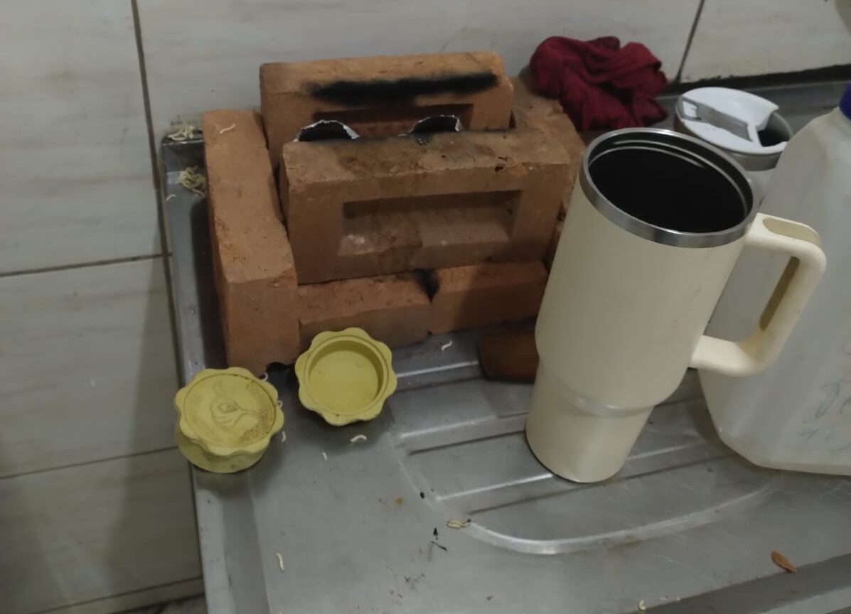 O preparo de refeições era feito por meio de um fogão improvisado, construído com tijolos sobre a pia da cozinha, pois não havia gás disponível aos operários. Não havia água potável para consumo.