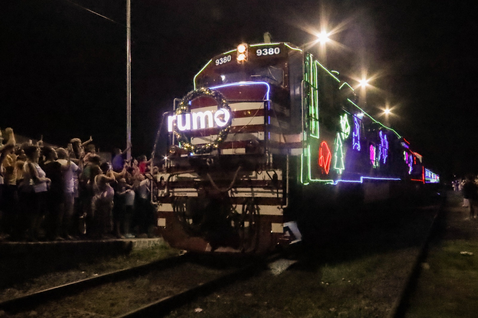 Trem iluminado de Natal da Rumo: