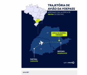 “Às 13h21, cumprindo sua navegação aérea, a aeronave realizou uma curva à direita momentos antes da perda de controle, entrando em uma condição chamada stall, vindo a perder sua sustentação em voo”, informou o Cenipa. “Como resultado, os pilotos perderam o controle da aeronave, que entrou em atitude anormal de voo, descrevendo giros em torno do seu eixo (parafuso chato), culminando em sua colisão com o solo em uma área residencial do município de Vinhedo”, acrescentou o centro de investigação.