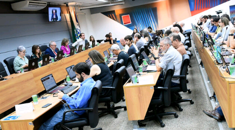 Sessão ordinária do Conselho Universitário realizada nesta terça-feira (30): rompimento com instituto israelense. Foto: Lúcio Camargo/Unicamp