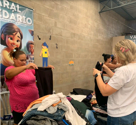 A proposta do evento é simples e acolhedora: oferecer roupas gratuitamente em um formato semelhante ao de uma loja, com peças organizadas em varais e mesas.
