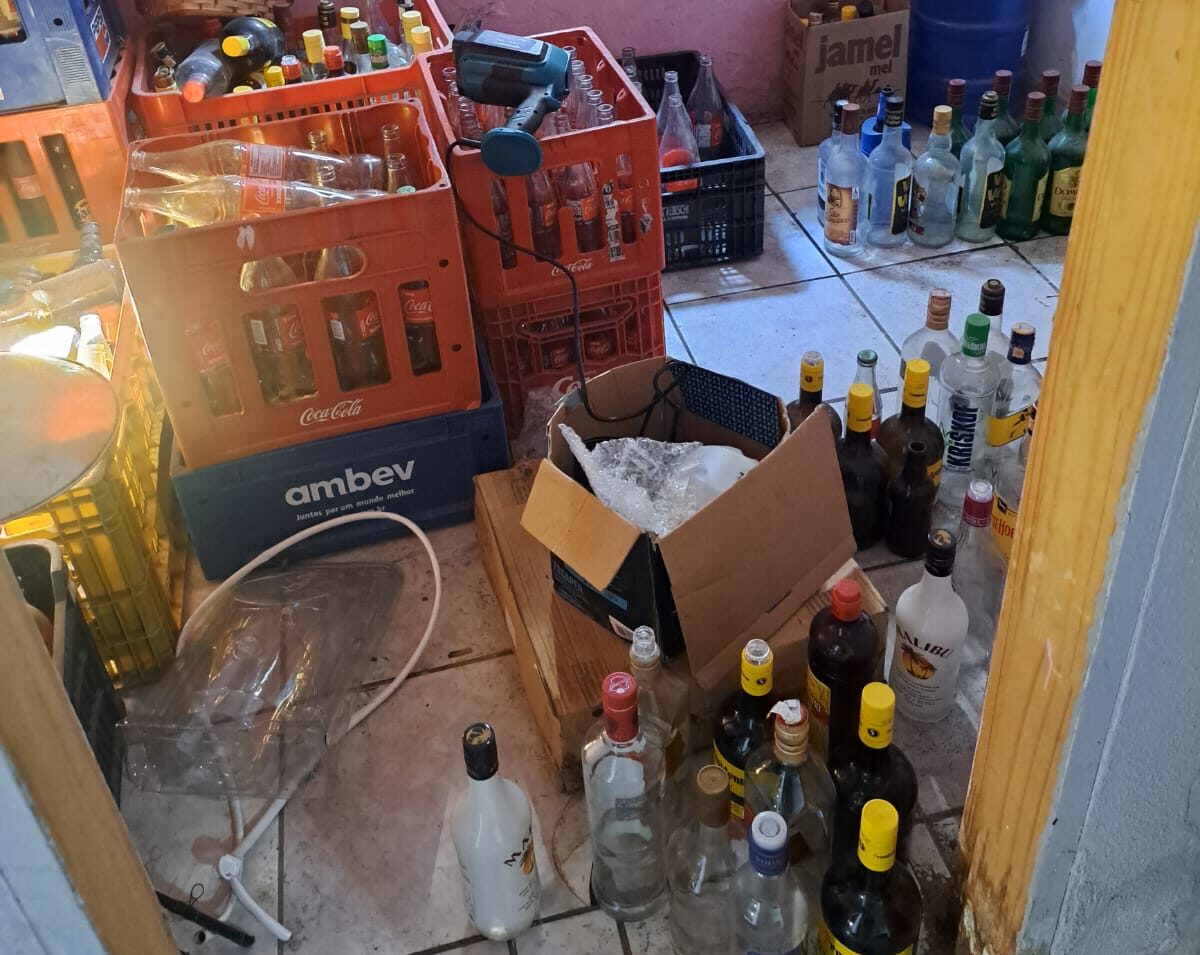 Também foram encontradas bebidas alcoólicas sem comprovação de procedência, todas imediatamente inutilizadas pelas autoridades competentes.