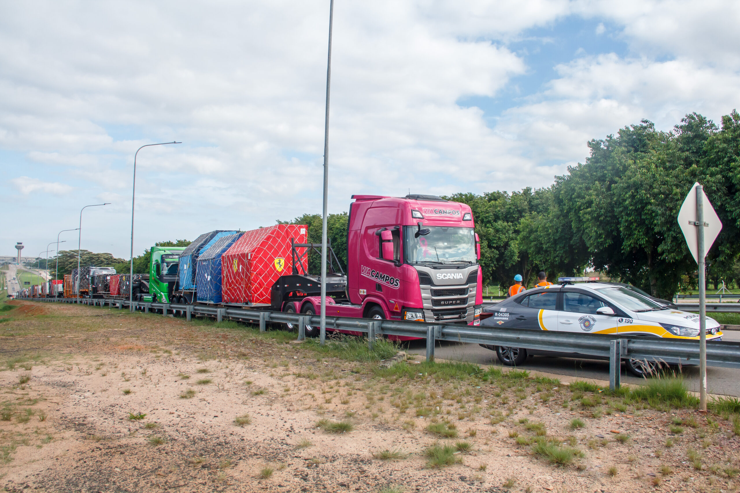 Viracopos montou uma operação especial para agilizar o processo. Os carros da F1 e os equipamentos foram transportados em comboios de carretas até Interlagos. O primeiro comboio, com oito carretas contendo os equipamentos do primeiro voo, seguiu na tarde de 23/10 para a capital paulista.