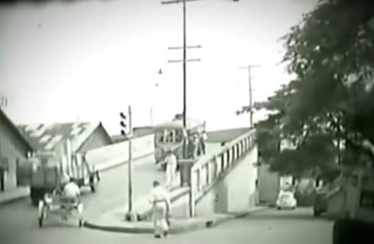 Pelas imagens, já era possível observar naquela época o intenso fluxo de carros, caminhões, ônibus e bondes, atravessando o estreito corredor, que era a única ligação da Vila Industrial com o Centro.